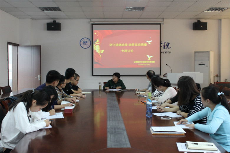 2016年9月29日下午,公司2014级研究生党支部在公司四楼会议室召开了题为“坚守道德底线,培养高尚情操”的专题讨论会。会议由2014级研究生党支部书记王虹圆主持,2014级全体研究生党员参加了此次专题讨论会。