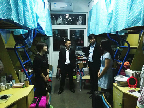屈光峰书记带领全体辅导员仔细认真地检查寝室安全卫生状况及员工假期离校情况,严查潜在安全隐患,反复声明寝室用电安全、人身安全、财产安全的重要性,强调搞好寝室卫生工作的重要性。屈书记重点走访毕业生寝室和新生寝室,亲切关心毕业生的生活、学习以及近期安排,耐心指导新生在忙碌中适应老员工活。