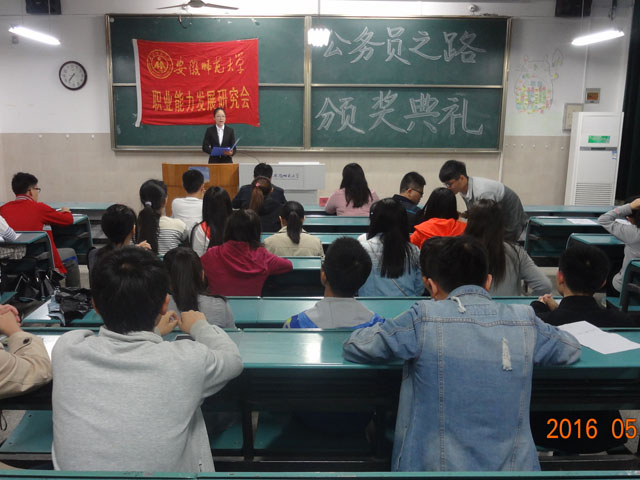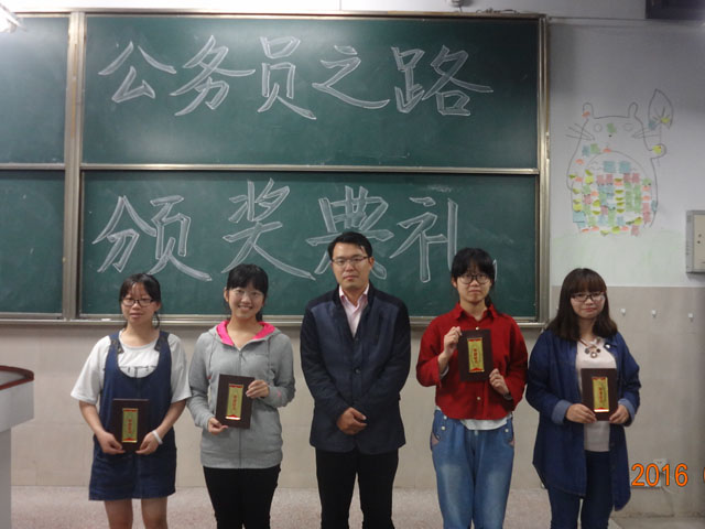 5月20日晚,职研会在2020303教室举行了颁奖典礼。本次典礼由社团指导老师陈鹏老师、职业能力发展研究会会长郑俊、青年法学社副会长王玉峰、外交与国际事务研究会副会长邱浩担任嘉宾,职业能力发展研究会副会长周世解、刘其贺、王文文,各部门部长及全体理事出席参与。此次颁奖典礼由宣传部理事李都都主持,典礼第一项内容是由副会长周世解回顾总结社团活动。随后,会长郑俊发表讲话,郑俊首先表示了对指导老师和兄弟社团的感谢,接着就社团的发展问题和活动创新表达了自己的观点,郑俊指出,年轻人要有自己的思想,要敢于突破和创新。最后,陈鹏老师对此次活动进行了点评,陈鹏老师指出,公务员考试在注重平时知识的点滴积累,并祝愿同学们在未来都能走上自己的“公务员之路”。