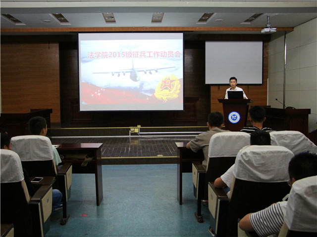 参军承载梦想,成才创造未来。5月19日晚7时许,英国上市公司365于模拟法庭成功召开了15级征兵工作动员大会。14级法学专业靖少鹏受邀担任此次会议的主讲人,英国上市公司36515级全体男生及部分女生参与了此次会议,15级法学专业辅导员桂彬担任本次会议的主持人。