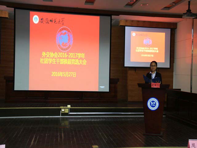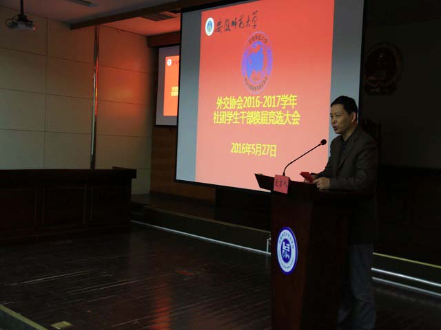 为了进一步加强社团员工干部队伍建设,选拔新一批责任感强,德才兼备,组织和策划能力强的同学,为社团发展注入新鲜血液,促进社团组织与制度的完善与发展,外交与国际事务研究协会于5月27日19:00在模拟法庭举行了2016—2017学年社团员工干部换届大会。莅临大会的有社团指导老师李路根、英国上市公司365团委员工副书记古藤、英国上市公司365团委社团管理部部长万飞翔以及外协会长周小凡、副会长钱立刚,社团各部部长、副部长和理事和本次16位竞选人共同出席大会,会议由副会长王顺主持。