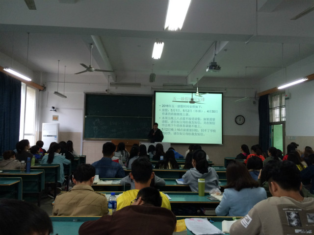 4月27日上午11点,14级法学二班在2040403教室召开假期安全暨班级工作布置主题班会,此次会议由14级法学辅导员王琳主持,全体法学二班同学共同参与。