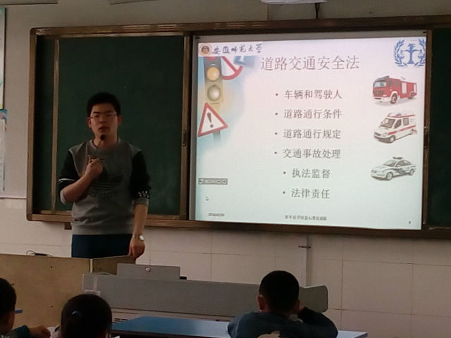小学一、二两组普法主题是道路交通安全,分别由14级法学一班郭臻同学和14级法学二班刘朝武同学担任本组主讲人。以简单问题的方式进行课程导入,鼓励员工积极回答,活跃了课堂气氛,通过选取贴近现实的法律概念、生活化的生动讲解、PPT课件的直观演示等方法,从国家交通安全现状、《道路交通安全法》的内容、交通事故责任认定的简易分析和道路交通中的自我保护四方面展开,原本老生常谈的交通安全话题在普法课堂中处处显出新奇的趣味,主讲人的讲授方式和荣内得到了同学们认可。