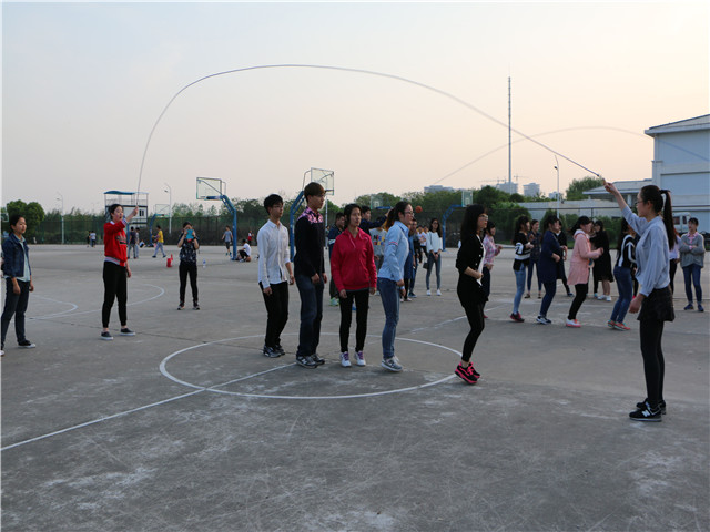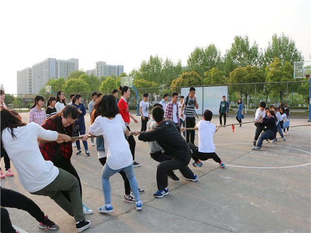 本次活动分为趣味拔河、花样跳绳和接力投球三个环节,参赛人员共分为四组。一声哨响,拔河比赛正式开始,首先进行比赛的是一、二两小组,第一组的成员们握绳、后倾、齐心协力取得胜利。第三组在与第四组的比赛中同样获得了胜利,但他们乘胜追击打败了第一组,取得了拔河比赛的冠军。在跳绳比赛中,第二组的成员步伐一致,跳绳与甩绳配合默契,以绝对的优势打败其他三组取得冠军。最后,接力投球正式开始。每小组成员接力投球,投中一球得一分,限时五分钟,一定时间内进球多者为胜。在两轮比赛和加时赛后,第一组以高命中率取得接力投球的冠军。