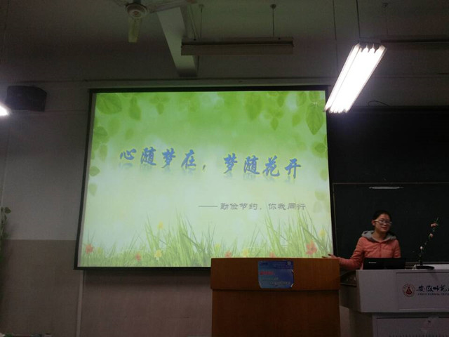 15法学一班宣传委员王玉玲通过召开“心随梦在,梦随花开”勤俭节约的主题班会,解读勤俭节约的含义,希望唤起同学们作为新时代接班人的责任感,进而鼓励同学们努力学习,树立勤能补拙、天道酬勤、俭中持家、俭以养德、节己约人、节约强国的信念,并付诸行动。