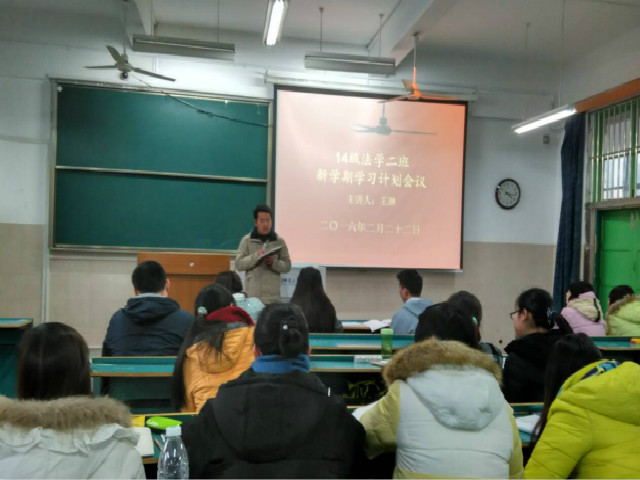 2月22号下午四点,14级法学专业辅导员王琳于2040403教室召开法学二班新学期学习计划会议,此次会议旨在帮助同学们明确学习目标、做好学习规划、了解员工工作。