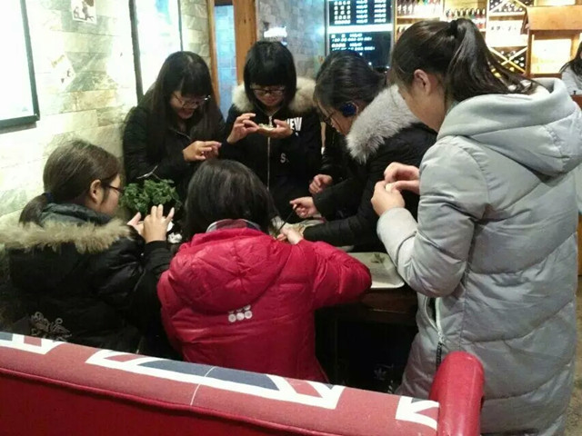法学一班的班委们在校外布置了一个温馨而高雅别致的晚会场所,叫做“光阴的故事”,同学们收获了意外惊喜的同时更多感受到一种家的温暖。晚会分为三个环节,先是自由包饺子,然后动手制作一些小东西,最后是一个神秘的环节。同学们在组长的带领下,以团小组的形式安全到达。