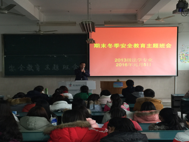 1月5日下午两点半,2013级法学专业在行知楼2020303就“安全教育勤抓不懈”主题召开第三次冬季安全教育大会。本次大会由13法学辅导员陈兴宇主持,13法学全体同学到场聆听。