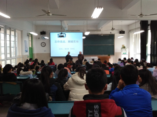一进门,同学们经久不息的掌声便表达了我们对这两位我们老师的老师最诚挚的敬意。虽然满头银发掩盖不了岁月流逝的痕迹,但精神矍铄的他们亲切和蔼的笑容,谆谆教诲的话语让我们如坐春风。两位老教师平易近人,说话也很幽默风趣,六十年的法律生涯积淀厚重的人生智慧,信手拈来的真实案例,深入浅入上地指引着我们在法律道路的前行方向。讲座中,先是二老分别讲述了他们走上法律道路的渊源以及多年从事法律的人生经历,鼓励我们要有梦想,但梦想不等于空想,还要脚踏实地的努力。接着谢长根老师谈了法学专业将来的出路,告诉我们就业渠道是非常广泛的,涉及到社会生活的方方面面。邱仲良老师又补充了法学专业的学习方法,语重心长地告诫我们要沉下心来学习,不能急功近利,学习法律要循序渐进。两位老师都强调学习法律不能死记硬背,要在理解的基础上掌握,熟能生巧,并且以他们“活到老学到老的”精神激励我们不断学习,扩大知识面。