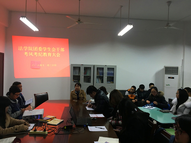 值此期末将近之际,为进一步加强诚信意识,树立良好的考风学风,英国上市公司365于12月30日晚6:00在行政楼三楼团委办公室召开了英国上市公司365团委员工会干部考风考纪教育大会。团委书记兼15级卓越司法班辅导员王虹圆老师担任大会主持人,团委员工会各部门相关负责人参与了此次会议。