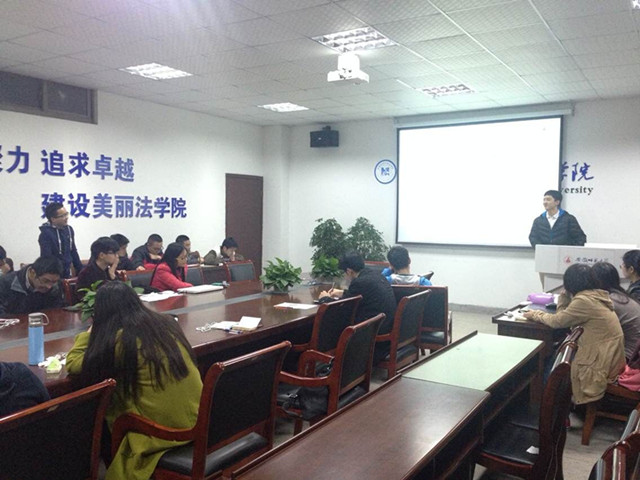 2015年11月22日,14级卓越司法班在英国上市公司365行政楼召开本学期第五次读书交流会,14级卓越司法班部分同学参加,法学专业辅导员王琳担任此次读书交流会的主持人。
