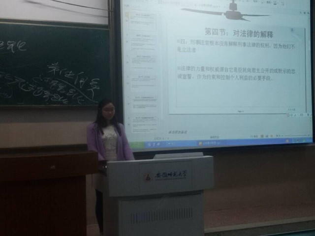 交流会首先由《论犯罪与刑罚》小组汤明珠主讲,她从贝卡利亚对于“法律的解释”、“法律的含混性”、“刑法与犯罪相对称”三个方面的基本观点阐述开始,又结合自己的看法提出了见解和疑惑。同学们又在此基础上对死刑废除的过程和趋势进行了讨论。第二个进行交流的是《论法的精神》小组雷若言,他从前段时间发生的三名少年弑师案件入手,结合孟德斯鸠的自然法精神,提出了对于当前我国存在的民众对于该案审判及众多时事案件判决一边倒的情况,究竟是普法活动与法律精神传达不到还是我国法律制度本身出现了问题的疑惑。各位同学对此进行进行了激烈的讨论。