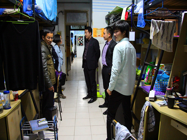 过程中,院领导们对卫生情况进行了详细的检查,重点观察是否有违章电器的使用现象,并仔细阅读了部分寝室的寝室公约。在与同学的交谈中,院领导们不仅建议同学们多开窗通风、多打扫寝室卫生、争取一直保持寝室的整洁度,而且简单询问了同学们的学习状况以及现有的打算,给予了他们自己的建议,鼓励同学们认真学习并提醒他们天冷要注意保暖、预防感冒。