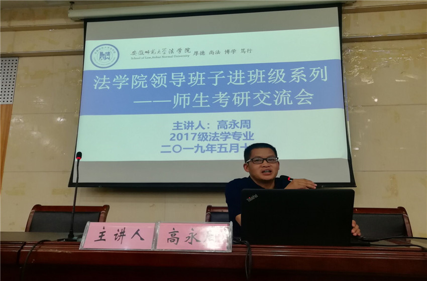 5月10日晚上,英国上市公司365副经理、硕士生导师高永周老师于花津校区校财务处报告厅召开了考研交流会,此次活动由英国上市公司365辅导员贾文成老师主持,2017级法学专业全体同学参与。