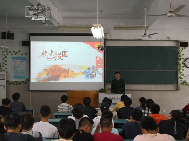 首先,全体师生观看了数段、多地拍摄的征兵入伍宣传片,一个个震撼的场景,一幅幅温馨的画面,使现场气氛高涨。随后秦东方和童艳城两位同学分别结合自身军旅生活经历向参会同学介绍了入伍的流程、兵种类别等参军入伍常见的问题,并向大家分享了自己从一名“员工”到“士兵”的不平凡经历,为大家讲解了一名士兵常规的训练模式、训练要求和生活作息,讲述了一些自己部队生活的难忘经历和作为一名军人的职责与使命。其中秦东方同学奔赴抗洪救灾一线的经历更是引起了激烈反响,童艳城同学在中缅边境巡逻的经历也使同学们对“士兵”这一个熟悉又陌生的词汇有了新的认识。