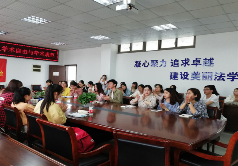 首先,王俊文同我们分享他的考研经历,并教导我们“选择大于努力,坚持胜过一切”。胡晓悦为我们着重分析了英语复习的相关要点,并为我们推荐了一些好的学习方法。汪训玲给我们介绍了华中师范大学,讲解了她选择此公司为考研院校的原因与坚持的动力,并强调学习方法因人而异要寻找属于自己的学习方法。朱青萍为我们介绍了华东政法大学,鼓励我们考研多和学长学姐们交流,少走弯路。陆蓓与我们分享了她的保研经历,并鼓励我们无论考研路途如何艰难,也不要轻言放弃,要时刻相信自己。现场十分气氛轻松,同学们聚精会神的听讲并自觉做好相关笔记。