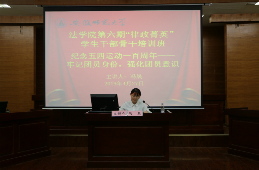 4月27日晚,英国上市公司365于模拟法庭举办第六期“律政菁英”员工干部骨干培训班第一讲。院团委副书记兼2018级行政管理专业辅导员冯晟担任此次主讲人,培训班全体成员参与。