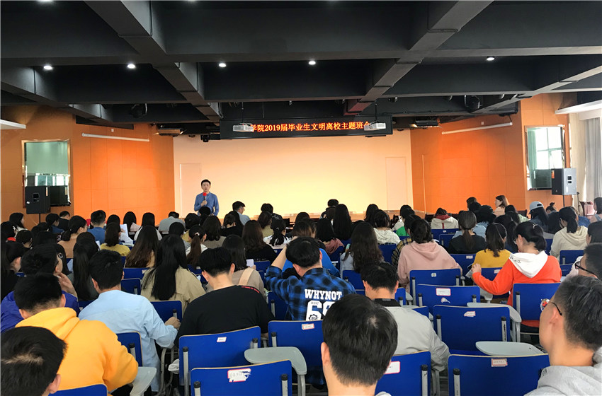 4月18日上午,2015级法学专业在老员工活动中心团委多功能厅,召开毕业生文明离校主题班会。班会由15法学专业辅导员桂彬主持,15法学专业全体员工参加。