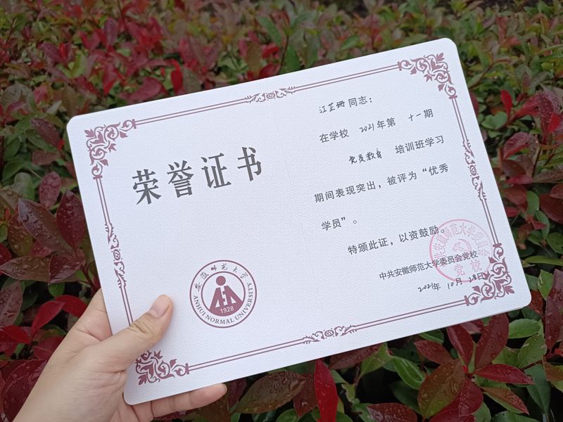 以信仰之光照亮前行之路,用如磐初心凝聚奋进力量。在大学四年里有过成功,也有过失败;有过喜悦,也有过无奈;有过希望,也有过失望。但所有过往,皆为序章,所有将来,皆是可盼,唯有更勤勉,方可不负众望。她始终坚信“宝剑锋从磨砺出,梅花香自苦寒来”的道理并不断努力着。相信在未来的日子里,她会珍惜每一寸光阴,继续坚守自己的理想信念,明确奋斗前行的方向,扬帆起航,奋勇向前,用汗水和勤奋开启新的征程,奔赴更美好更光明的未来!