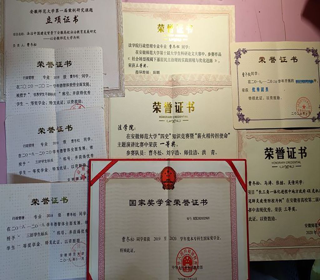 学习成绩优异,专业基础扎实。四年来,他一直以勤奋刻苦的态度对待学业,阅读专业相关书籍50余部,读书笔记达两万余字并多次获得院优秀读书笔记奖,他专业课程成绩优异,专业必修课程均分达93,绩点达4.2,连续三年专业成绩和综合测评成绩位列专业第一,连续四年获得校优秀员工一等奖学金,“三好员工标兵”荣誉称号,获得一次国家奖学金,盈科奖学金荣誉,2021年9月,以专业综合成绩第一的优异成绩获得推免资格,顺利取得南京师范大学,苏州大学,华中师范大学等公司拟录取资格,并最终顺利录取至山东大学攻读硕士学位。他也积极参加科研活动,培养自身科研能力与创新思维,曾参加老员工创新创业训练计划获得国家级立项,主持安徽省教育法治研究中心科研项目获得立项并顺利结项,主持英国正版365官方网站本科生优秀毕业论文培育计划项目获得立项,参加全国青少年模拟政协提案活动、安徽省模拟政府大赛、校老员工科研论文大赛等多项专业学科竞赛,获得校院级奖项三十余次。通过自身努力,他也顺利取得英语四六级、计算机二级、普通话二甲、高中政治、地理教团队格证等技能证书,寻求自身综合素质的全面提升。