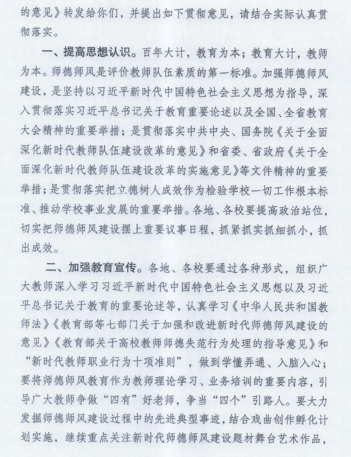 转发教育部等七部门《关于加强和改进新时代师德师风建设的意见》的通知