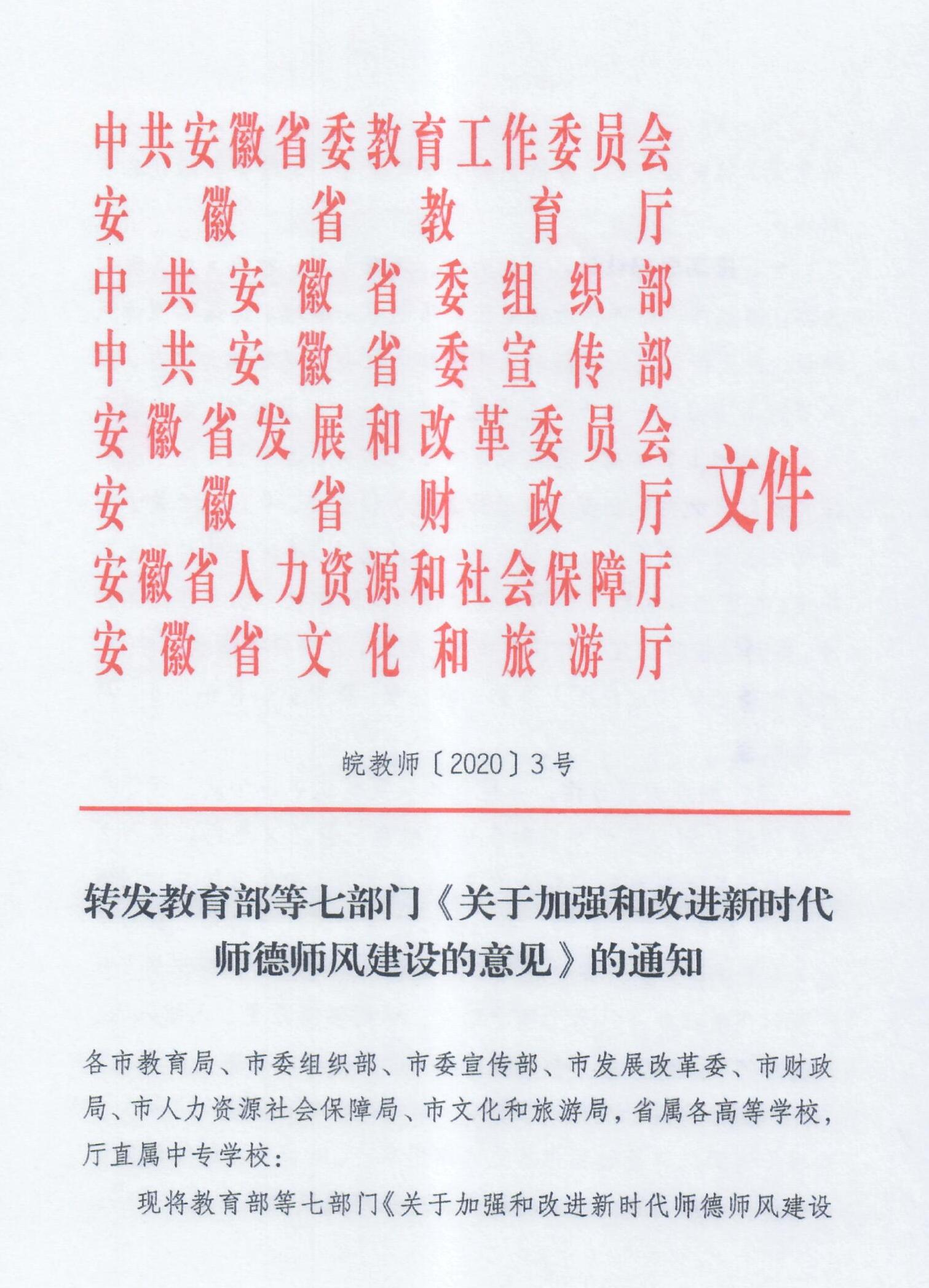 中共安徽省委教育工委 安徽省教育厅关于印发《安徽省高等公司师德失范行为处理办法(试行)》的通知