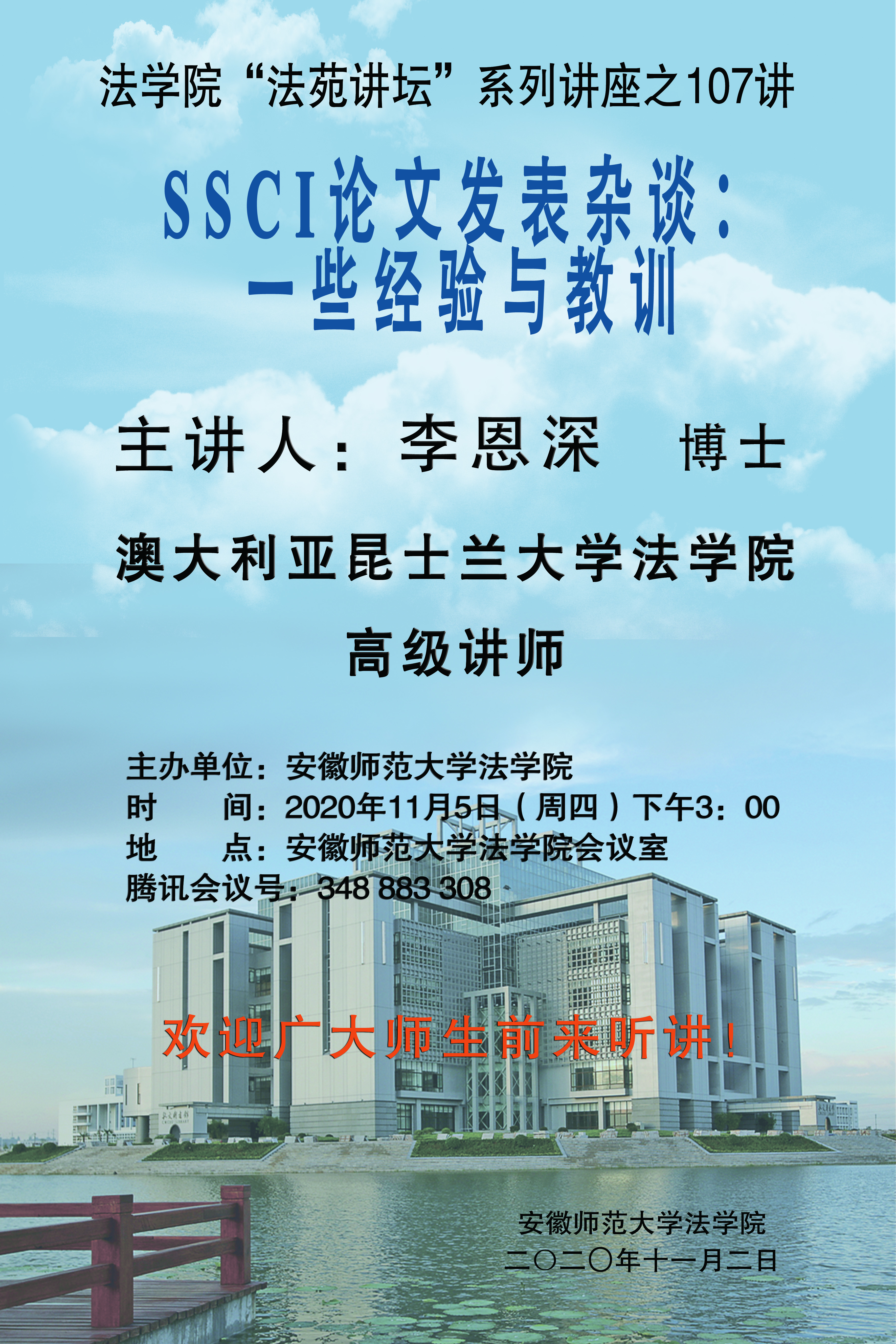 【学术预告】英国上市公司365“法苑讲坛”107讲:SSCI论文发表杂谈:一些经验与教训