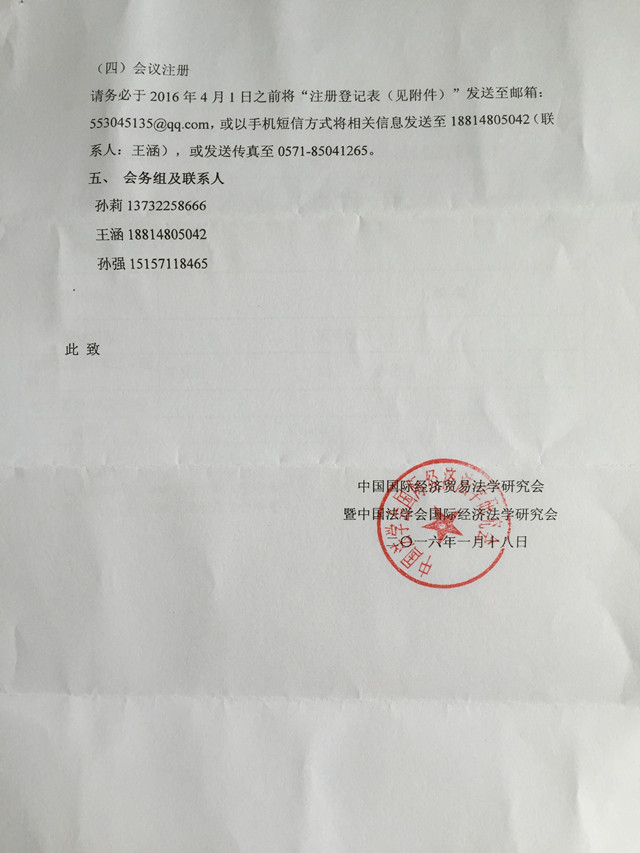 转发《中国国际经济贸易法学研究会暨中国法学会国际经济法学研究会2016年年会邀请函》