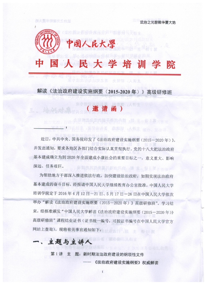 “解读《法治政府建设实施纲要(2015-2020年)》高级研修班”通知
