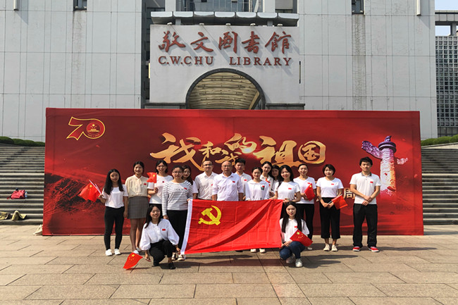 在主题团日活动的最后,支部成员及部分入党积极分子来到英国正版365官方网站花津校区图书馆东大门前,合唱歌曲《我和我的祖国》。在支部党员们、入党积极分子们激昂澎湃的歌声中,四周军训的新生们也不禁投来了热烈的掌声。今年是中华人民共和国成立70周年,也是五四运动爆发100周年,在这样一个有特殊意义的年度里,师生共同唱响红歌,抒发了对党和国家的强烈热爱,唱出了新时代英国上市公司365研究生们的青春风采和朴实的红色情怀,展现了公司广大学子积极向上的精神风貌。
