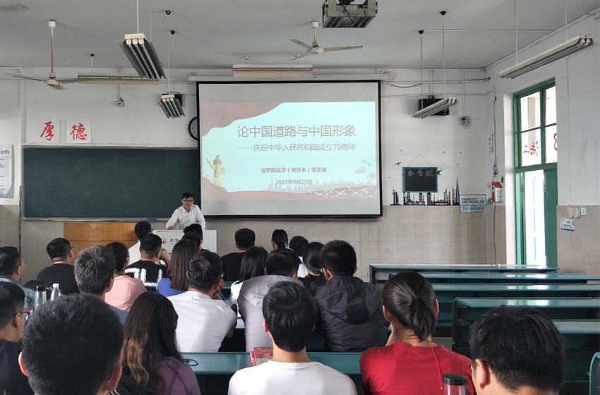 法学(专升本)党支部全体党员和入党积极分子9月27日上午,在行知楼开展党员活动日。支部书记黄世凯带领大家观看了中央档案馆公布的12分钟开国大典彩色影片,影片真实还原了1949年10月1日庆祝中华人民共和国中央人民政府成立典礼。从黑白到彩色,旷世盛典让人热血沸腾。随后,黄世凯以“论中国道路与中国形象”为题和支部成员分享了个人学习体会。中国道路的开创与发展历程及其彰显的中国智慧、中国方案、中国形象进一步激发了大家的爱国情怀,也使大家对“不忘初心、牢记使命”有了更深入的思考和认识。