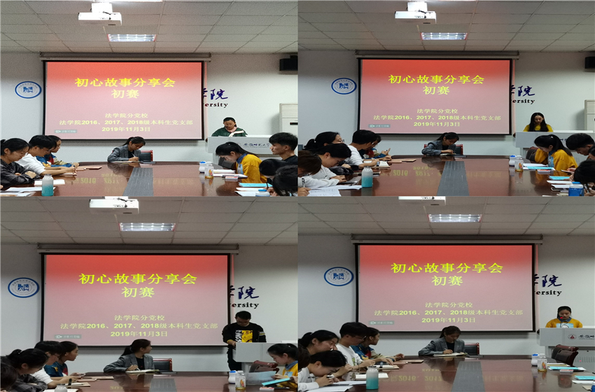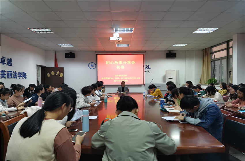 “‘如果瑞勤真要等我,则我对她有几点要求:一要读书;二要革命;三不要缠脚。’在江西芦溪县卢德铭烈士陵园,仍然保存着关于他南征北战之余写给家人信件中的一些片段。”16法学专业的王金云同学站在台上,拿着话筒,缓缓讲述着一段“初心的故事”。而在她之后,其余8名同学相继上台分享,文思捷以王尔琢的“托孤书”为原点,感受革命者在家庭与国家命运发生冲突之际,舍小家为大家的伟大情操;陈沁瑶、喻雯婕将赵一曼的“示儿书”作为训诫,歌颂英雄无畏、为国牺牲、为国奋斗的情怀与信仰;魏长睿把傅烈视为标杆,在“绝命书”里检视初心,发出珍惜韶华的感慨;汪能焕缓缓道一声将军,把彭德怀的爱国情体现得淋漓尽致;刘颖以革命时代英雄烈士的爱情为落脚点,从张朝燮之“两地书”告诉我们一代先烈的献身精神与担当;夏坤讲述黄旭华为国尽忠的一生,坚定将来之环球,必是赤旗的世界;卢堂仪以“永不消逝的红色电波”为题,深切缅怀风范长存的机要战士李白同志。