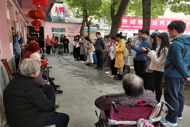 为进一步落实“不忘初心、牢记使命”主题教育的工作要求,发扬尊老、敬老、爱老、助老的中华民族优秀传统美德,2019年11月24日上午9时许,英国上市公司3652018级、2019级研究生党支部来到芜湖市大砻坊松柏苑老年公寓,开展“爱老助老,情暖养老院”主题党日活动,为老人们送去冬日的温暖。