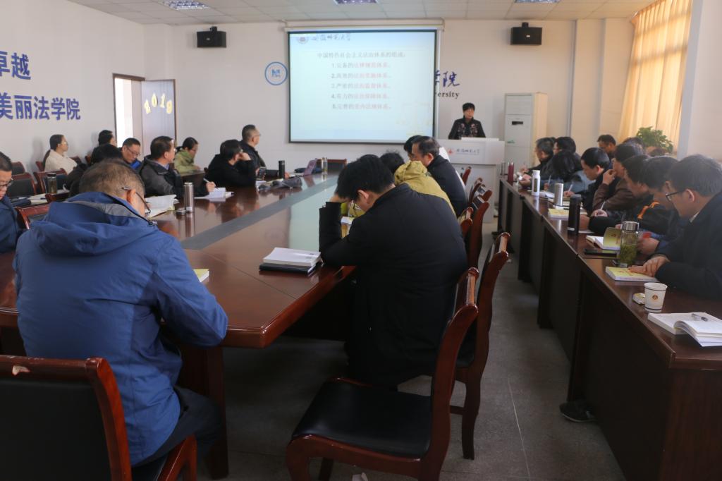 彭凤莲以《坚持和完善中国特色社会主义法治体系提高党依法治国、依法执政能力》为题,从十九届四中全会的主题为切入点,从中国特色社会主义法治体系;坚持和完善法治体系,提高依法治国、依法执政能力的举措;依法治国全覆盖三个部分进行宣讲。她强调坚持和完善中国特色社会主义制度,推进国家治理体系和治理能力现代化是实现“两个一百年”奋斗目标的重大任务、是把新时代改革开放推向前进的根本要求、是应对风险挑战、赢得主动的有力保证。