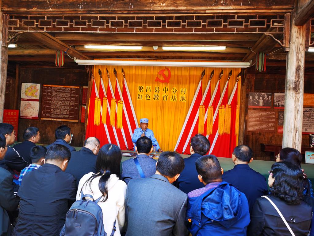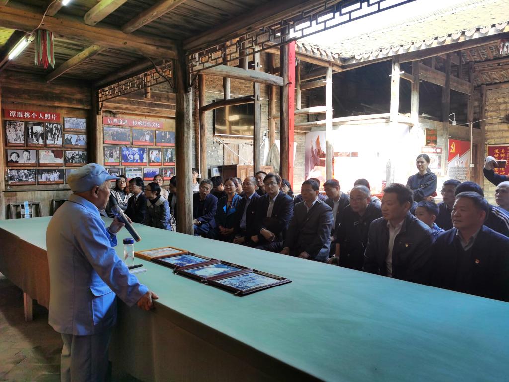在中分村原新四军三支队司令部旧址,党员们仔细观看展馆内的图片及抗战遗留的实物,倾听徐孝旺老人对新四军粉碎日寇夺取繁昌、扫荡皖南的五次繁昌保卫战和谭震林将军在中分村战斗生活的革命岁月的深情讲解。革命先辈不畏艰险、舍生忘死的大无畏精神深深震撼着在场的每一位党员。