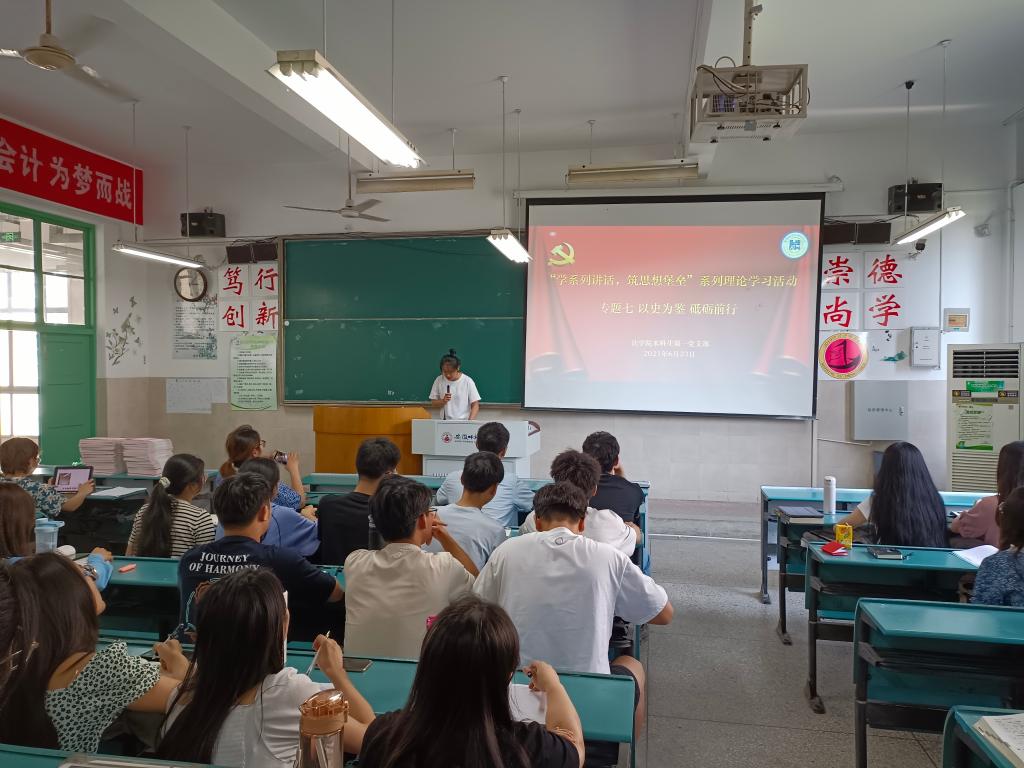 随着理论学习的深入,付孟璐同志以“杂交水稻之父”袁隆平院士、“中国肝胆外科之父”吴孟超院士、以及忠诚执着守初心,无私奉献担使命的张桂梅董事长为我们深刻讲解,以史为镜,知史鉴今。告诫我们向时代先锋模范党员同志学习,进一步激发同学们爱党爱国爱社会主义的巨大热情,不忘初心、牢记使命,为新时代全面建设社会主义现代化国家不懈奋斗!