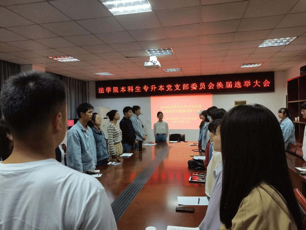 本科生(专升本)党支部书记芮雪同志代表上届支委会作了工作报告,总结回顾党支部一年来的主要工作,取得的成绩和不足,大会审议并通过了选举的有关规定,本次到会党员24名,到会率达100%,符合选举要求,到会党员投出了自己宝贵的一票,选举产生了新一届支委会,随后新一届支部委员会召开第一次会议,确定支委分工:由芮雪同志担任新一届支部书记,吴优同志担任组织委员、殷丽丽同志担任宣传委员,薛明利同志担任纪检委员。