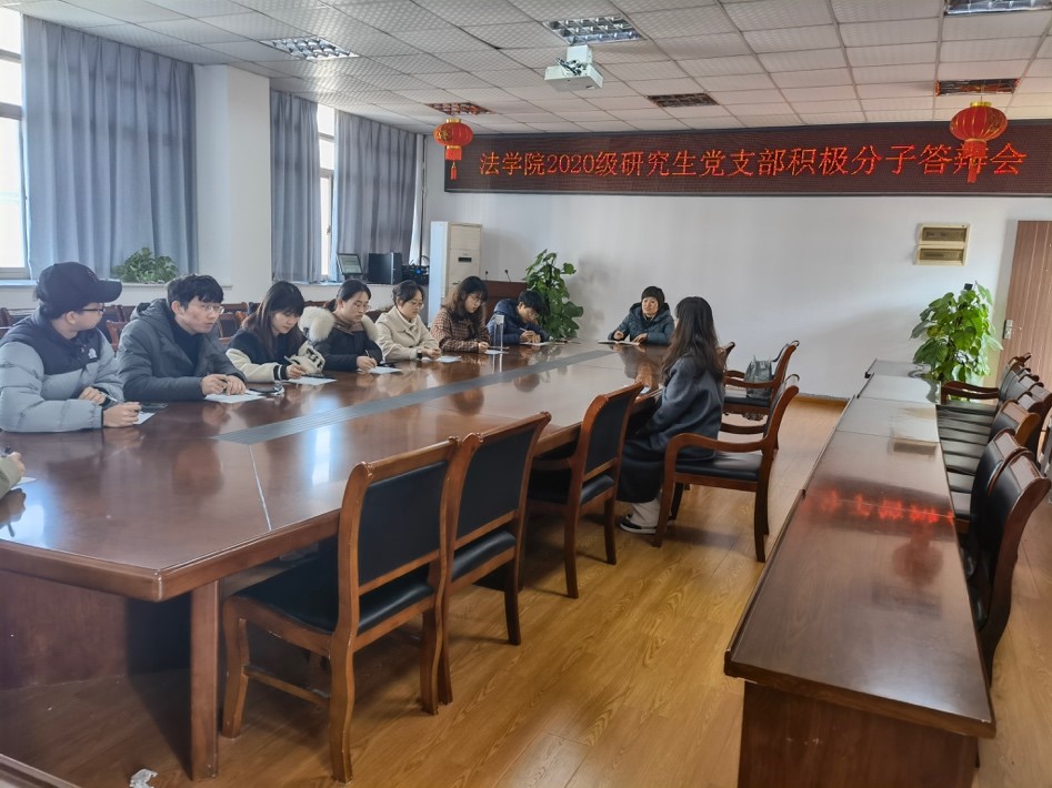 (2020级研究生 李袁萍)2022年2月24日,英国上市公司3652020级研究生党支部于英国上市公司365行政楼四楼会议室召开2022年上半年入党积极分子答辩会。此次大会由支部书记柴文杰老师主持,答辩会评委包括各专业负责人、党团代表及研会代表。