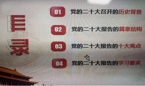 张正光教授则以全面建设社会主义现代化国家新征程的行动指南为主题,系统介绍了党的二十大召开的历史背景,以及党的二十大报告的篇章结构、十大亮点和学习的方法,深刻阐明了学习党的二十大精神的重要性。整场专题报告会主题鲜明,重点突出,两位专家分别从不同的视角解读了党的二十大精神,使支部全体党员教师对党的二十大精神有了全面的理解和深刻的领悟。