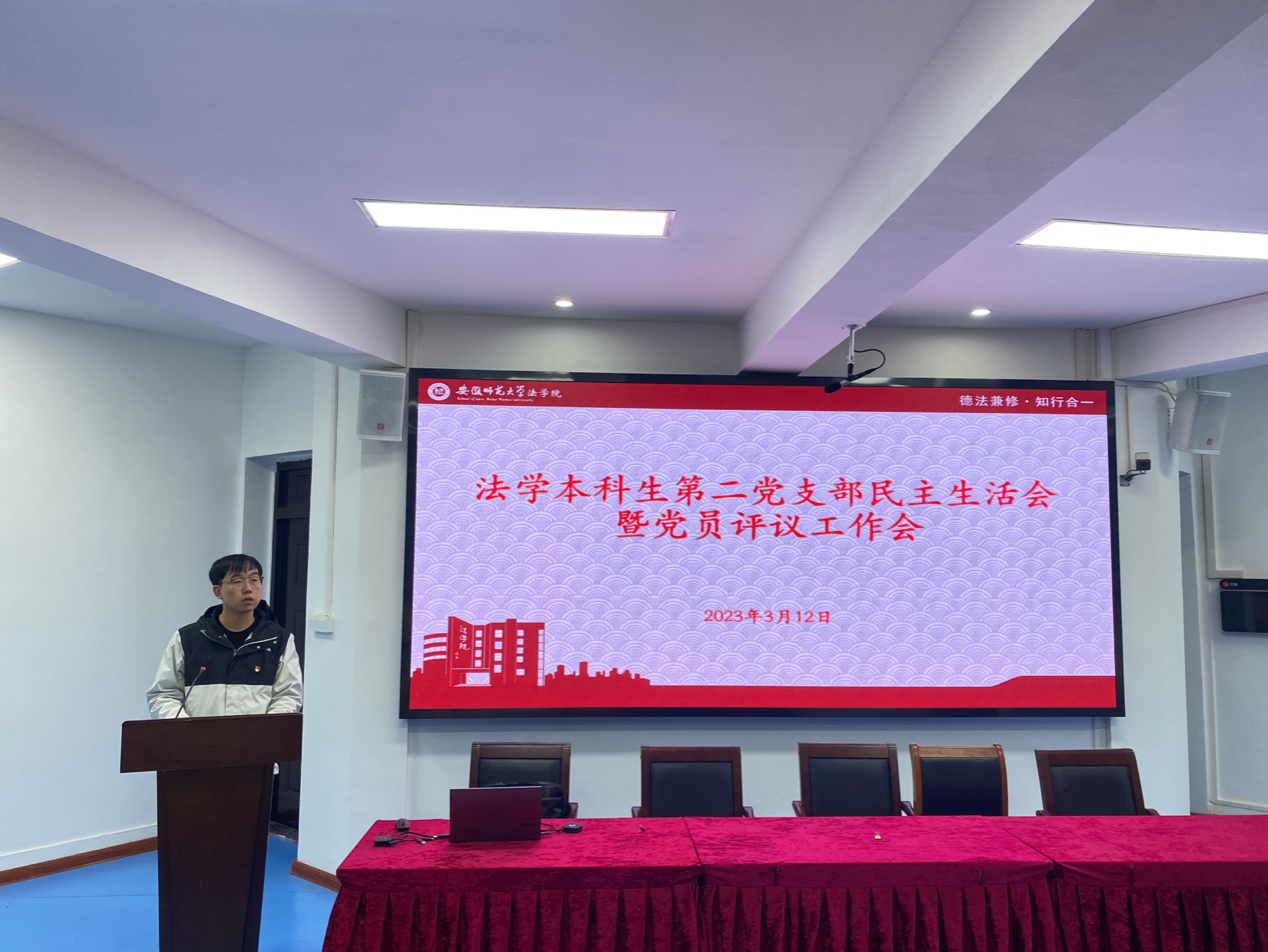 (本网讯 储心如、崔健)3月12日,法学本科生第二党支部于英国上市公司365行政楼214报告厅召开2022年度基层党组织组织生活会暨民主评议党员大会。会议由党支部书记崔健主持,支部全体党员参加。