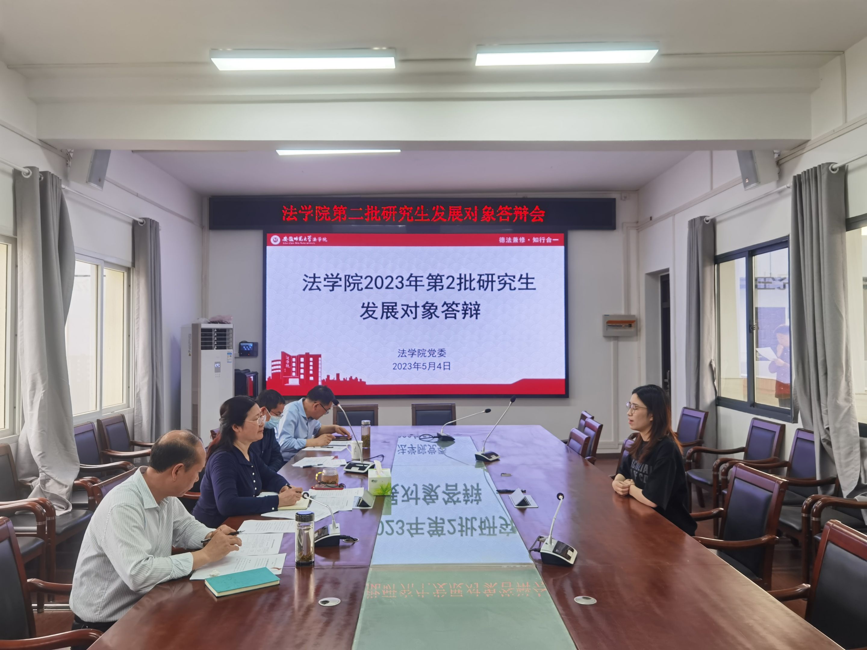 本次共有3名研究生发展对象候选人逐一参加答辩。候选人首先进行简要的自我介绍,主要汇报入党动机、对党的认识、在校期间表现、自身存在问题等情况。本次答辩重点考察发展对象候选人对习近平新时代中国特色社会主义思想、党的二十大精神、党章等内容的学习掌握情况。答辩结束后,评委组根据发展对象候选人的答辩情况和平时表现给出综合评价。