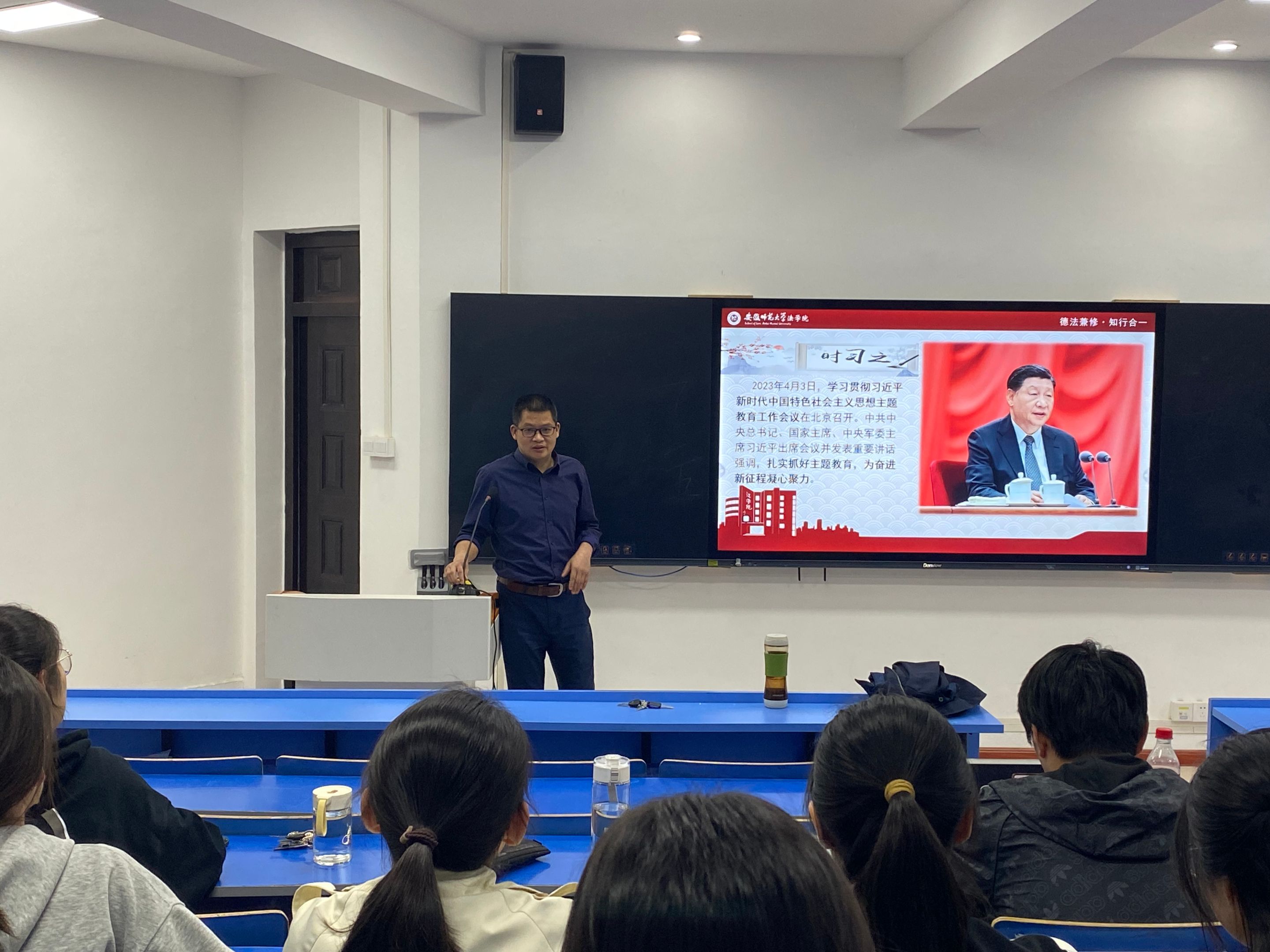 副经理高永周为所联系的党支部——法学本科生第三党支部,开展题为《习近平新时代中国特色社会主义思想的真理力量》的专题党课。高永周围绕习近平新时代中国特色社会主义思想,从核心要义、世界观方法论、科学体系以及学习方法四个方面为大家上了一堂精彩的专题党课,带领大家深刻领悟习近平新时代中国特色社会主义思想的真理力量和实践伟力。高永周强调,党员要在原原本本学、联系实际学、创新形式学、贯彻落实学上下工夫,深刻领会习近平新时代中国特色社会主义思想的丰富内涵。