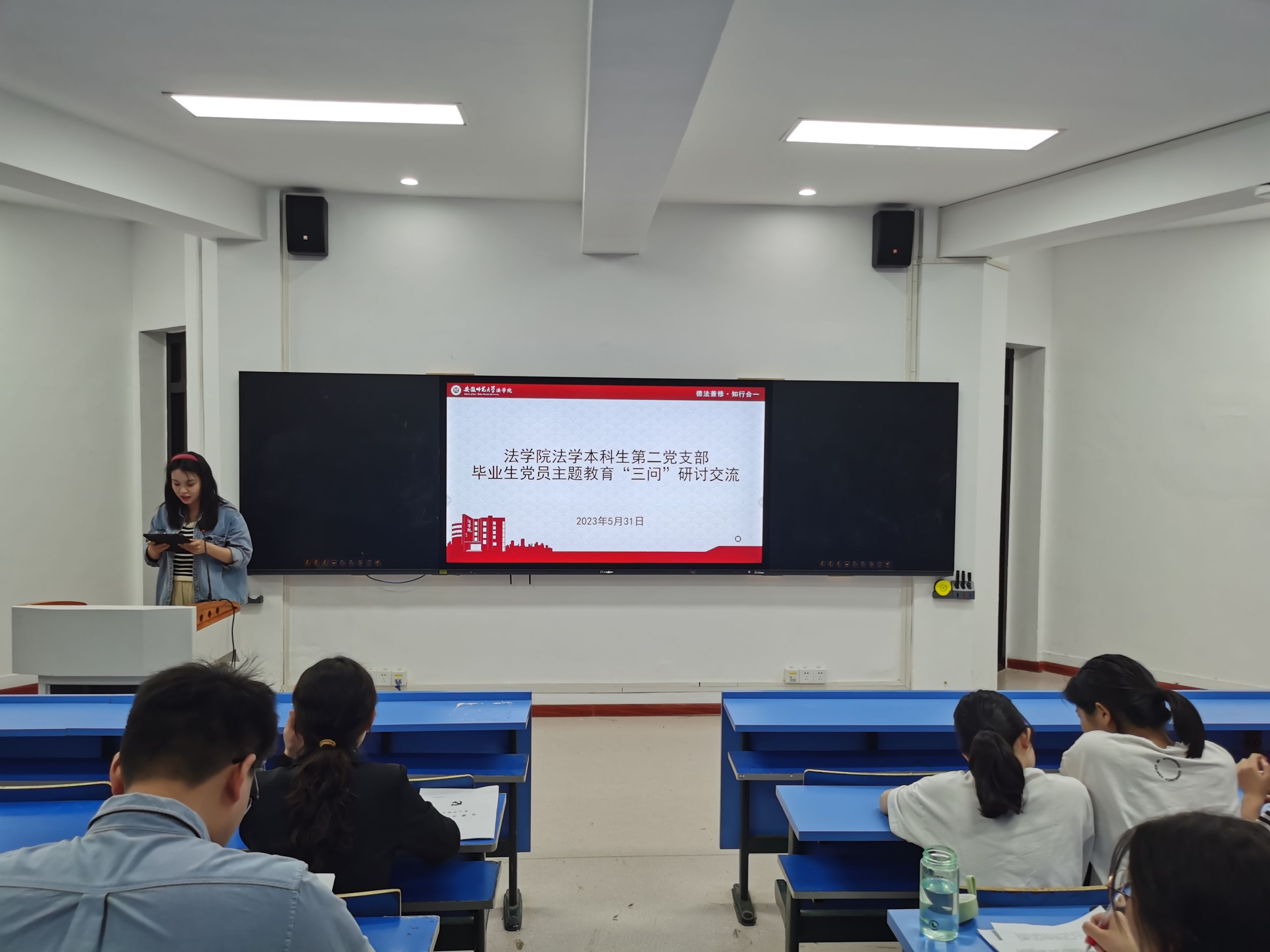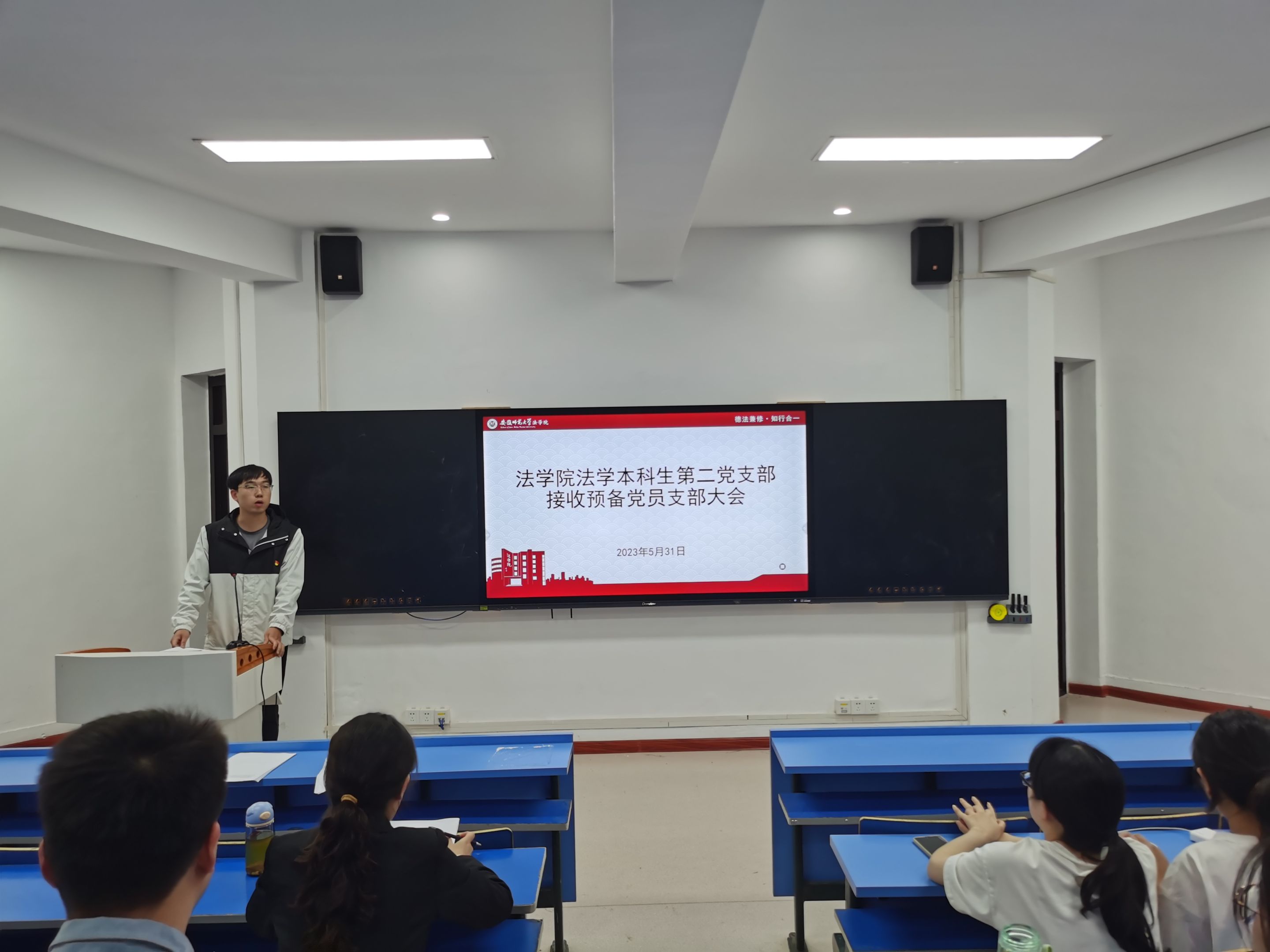 5月30日晚,法学本科生第二党支部在行政楼113阶梯教室召开接收预备党员支部大会暨毕业生党员主题教育“三问”研讨交流会。会议由支部书记崔健主持,全体支部党员参加。