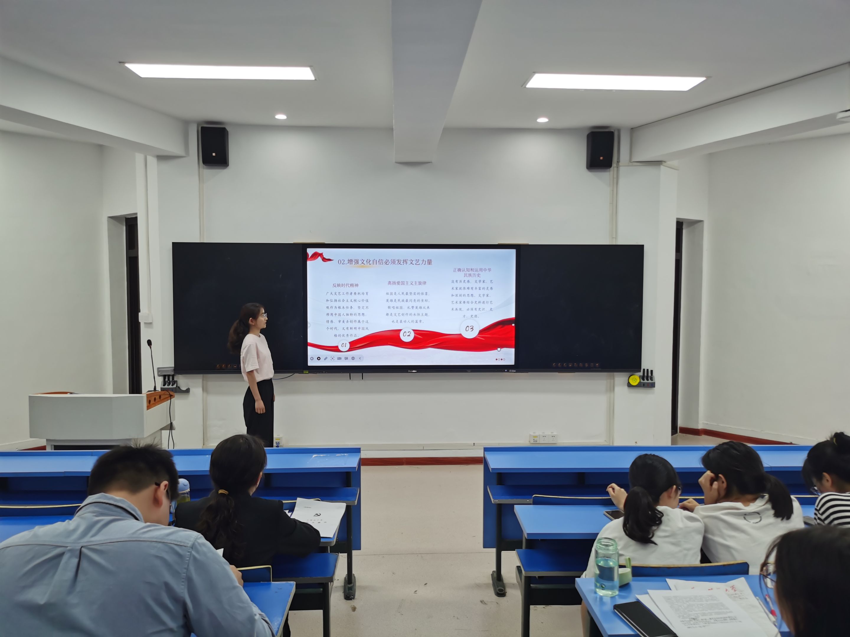 会议第一项,支部党员王韦就《习近平著作选读》第一卷中“要有高度的文化自信”部分内容进行领学。她强调,文化自信事关国运兴衰,文化自信事关国运兴衰,文化自信事关民族精神独立性,文化自信事关文化安全,实现中华民族伟大复兴必须坚定文化自信。增强文化自信必须发挥文艺力量,筑牢文化自信必须坚持守正创新。我们要坚持不忘本来、吸收外来、面向未来,在继承中转化,在学习中超越。