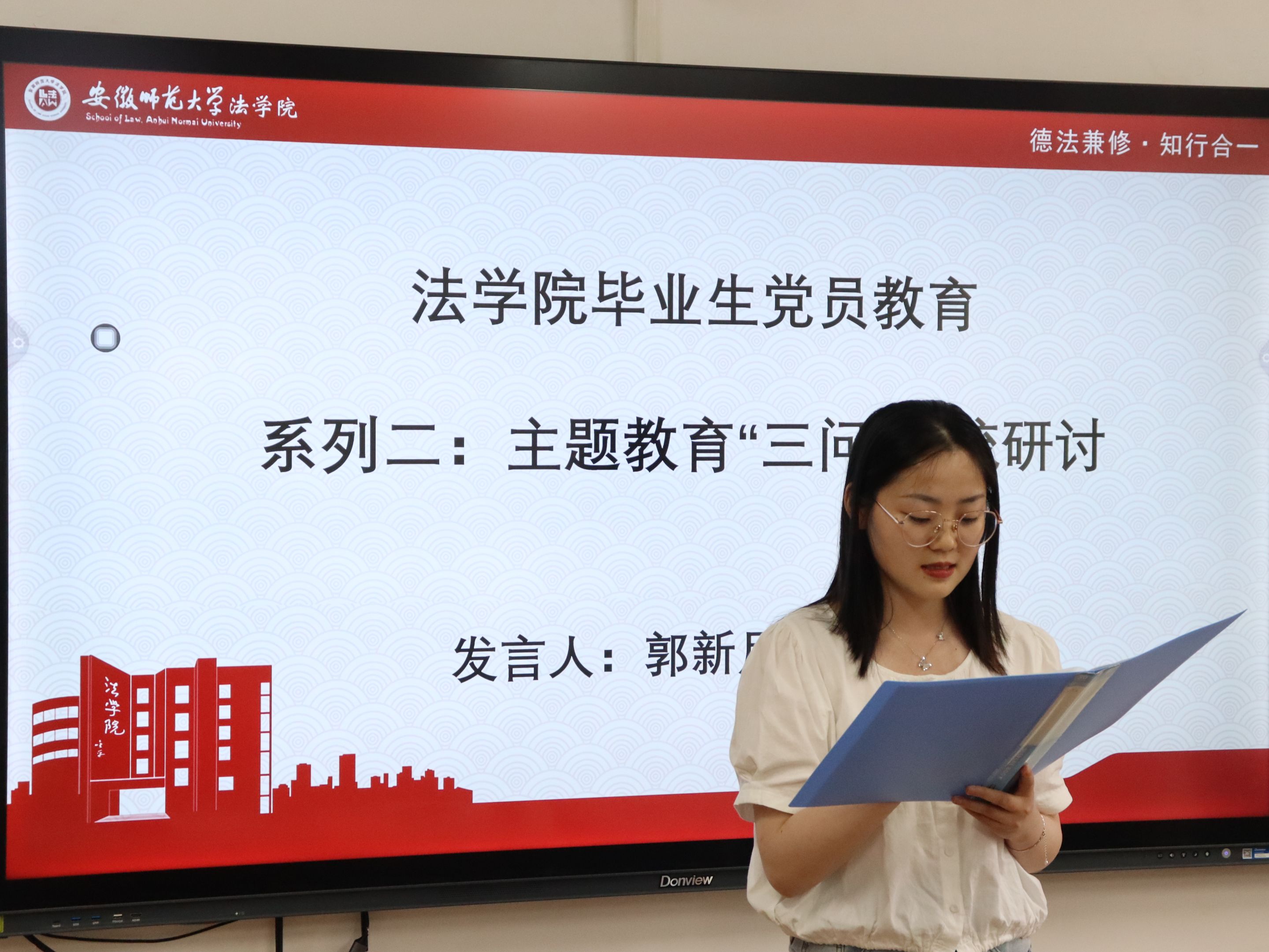 “三问”交流研讨,明确务实作风。党支部开展学习贯彻习近平新时代中国特色社会主义思想主题教育“三问”交流。郭新月、谢永毅分别围绕“过去学得怎么样、现在干得怎么样、将来打算怎么办”开展专题交流研讨,反思不足,展望未来。