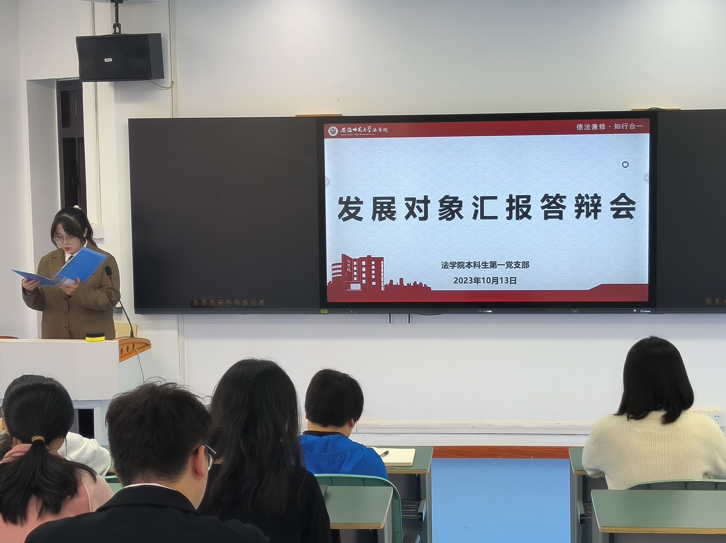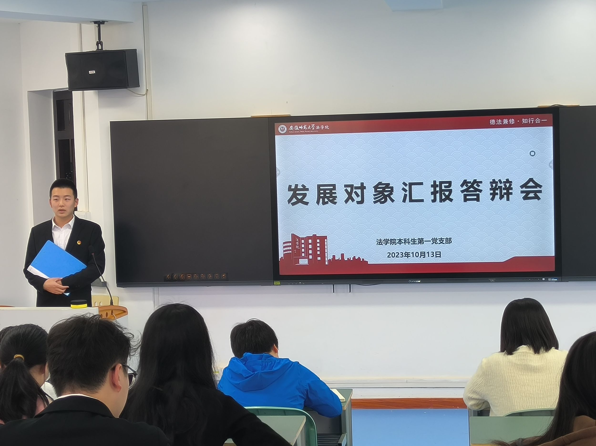 经过前期班级民主评议和群众座谈,2020级和2021级行政管理、社会学、社会工作专业此次共有17名入党积极分子参加评选。首先,积极分子根据会前抽签顺序依次进行汇报,他们从入党动机、理论学习、现实表现、实践服务和未来展望等方面展示。在答辩环节中,评委们随机进行提问,考察候选人对党的基本理论的理解与掌握、对党的二十大精神和主题教育的学习贯彻情况。会后,经支委会讨论同意发展对象名单在各班级群公示,并报上级党委审核。