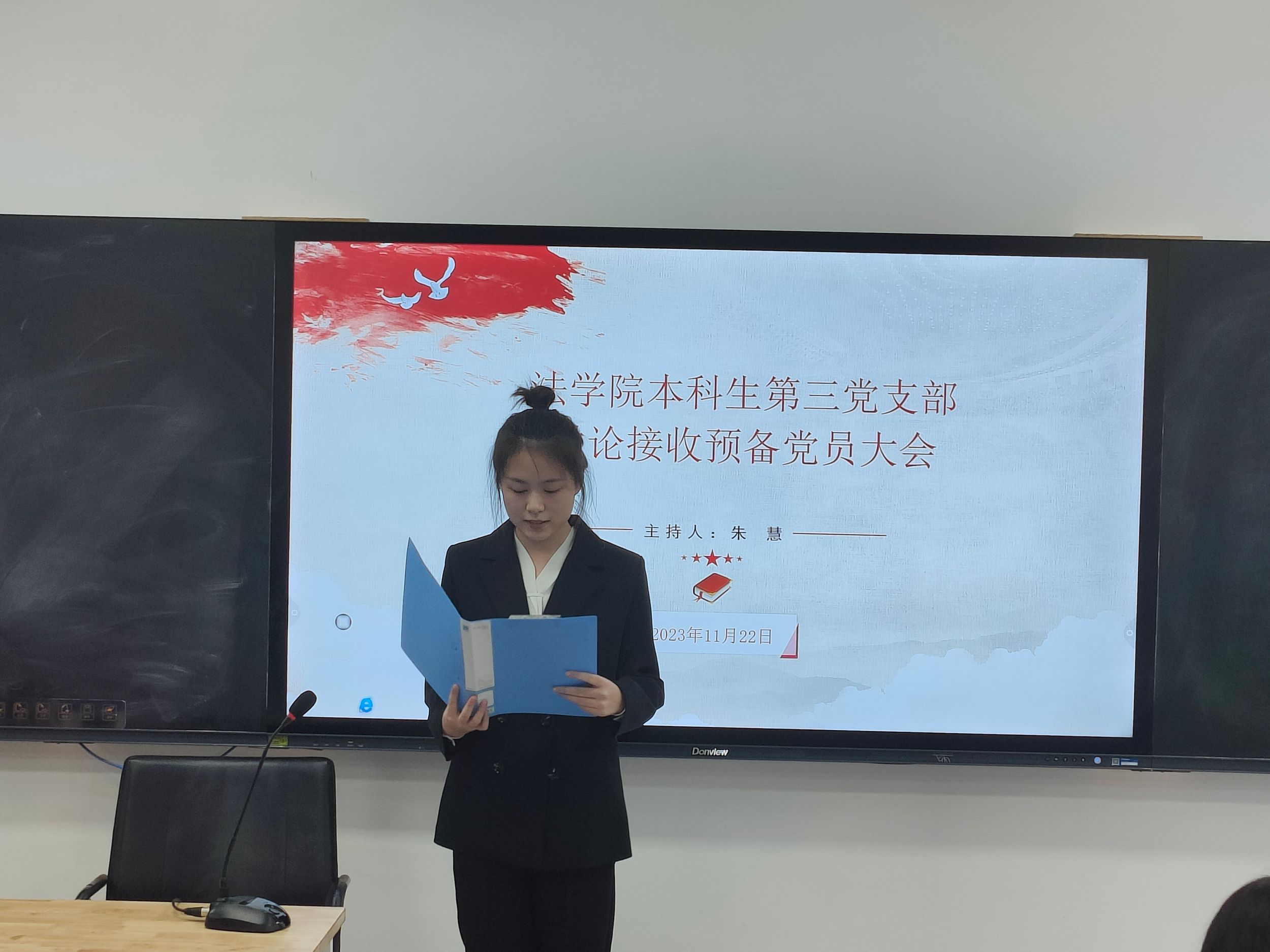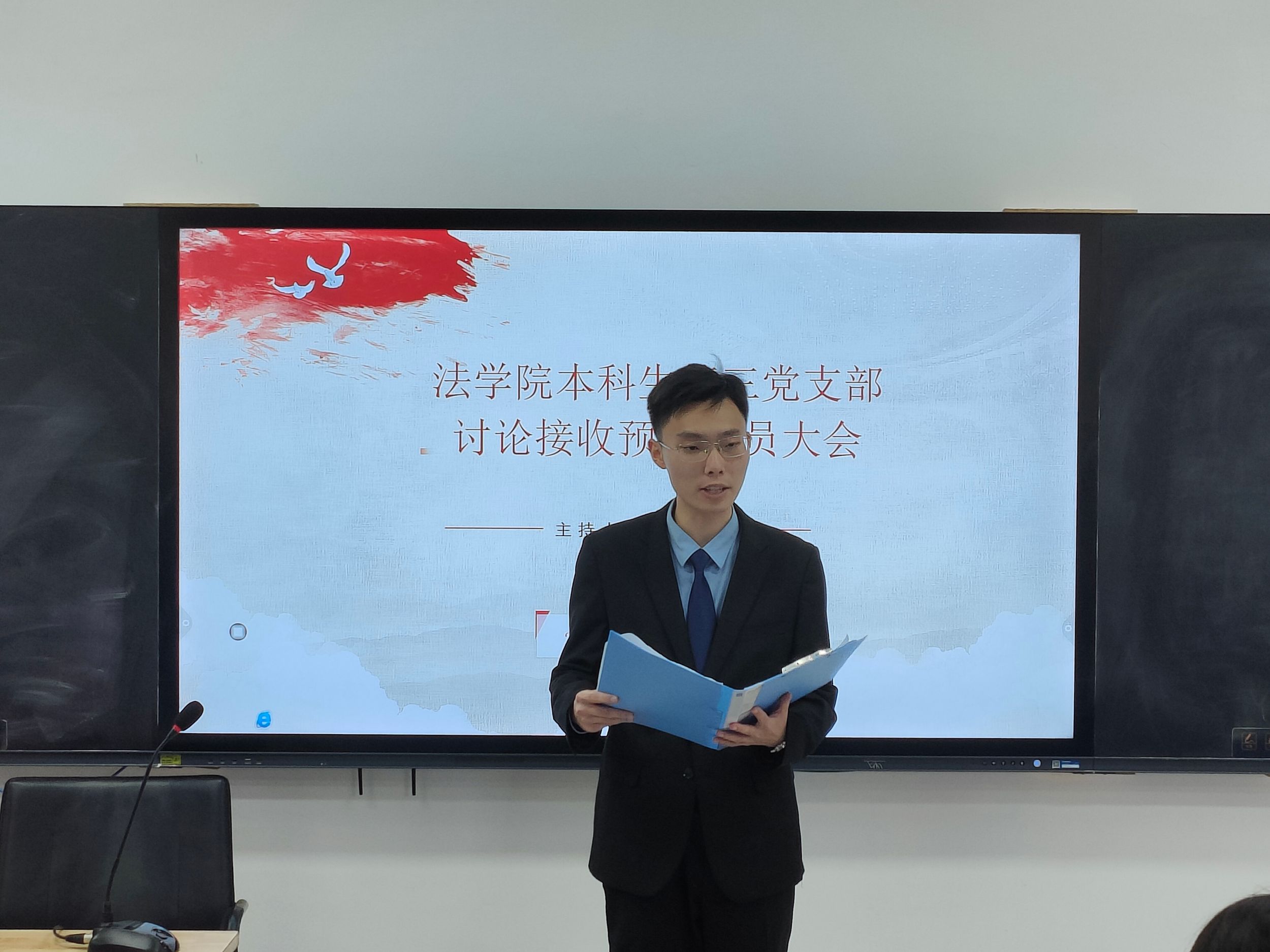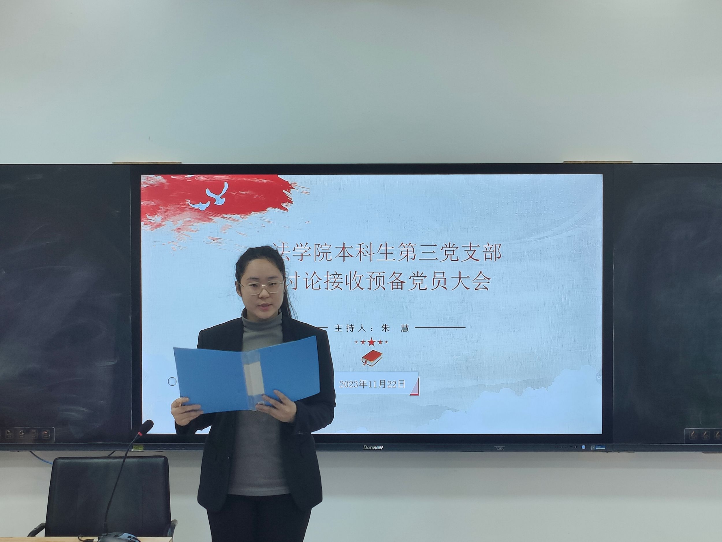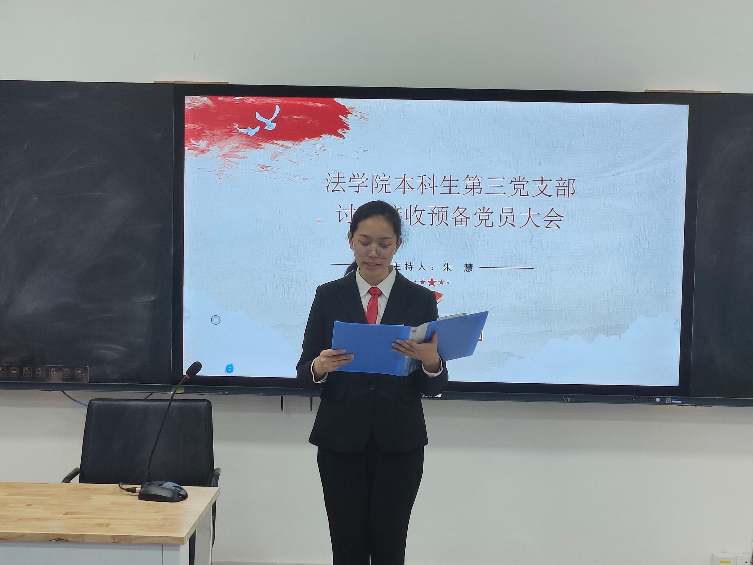 会议第一项,全体起立,奏唱国歌。朱慧向大会确定并报告出席人数符合规定后,桂杨等6名发展对象依次宣读《入党志愿书》,汇报对党的认识、入党动机、本人履历及其他需向党组织说明的问题,表达加入党组织的强烈愿望。入党介绍人依次向大会介绍了发展对象的学习、生活以及工作等现实表现情况,并对其能否入党表明了意见。随后,支部宣传委员朱长龙代表支委会向大会报告对发展对象的审查情况。全体与会党员对发展对象进行了充分讨论,既提出了优点,也指出了缺点。发展对象对大会提出的不足和意见表示接受,并纷纷承诺将在今后的学习和工作中努力改正,不断进步。