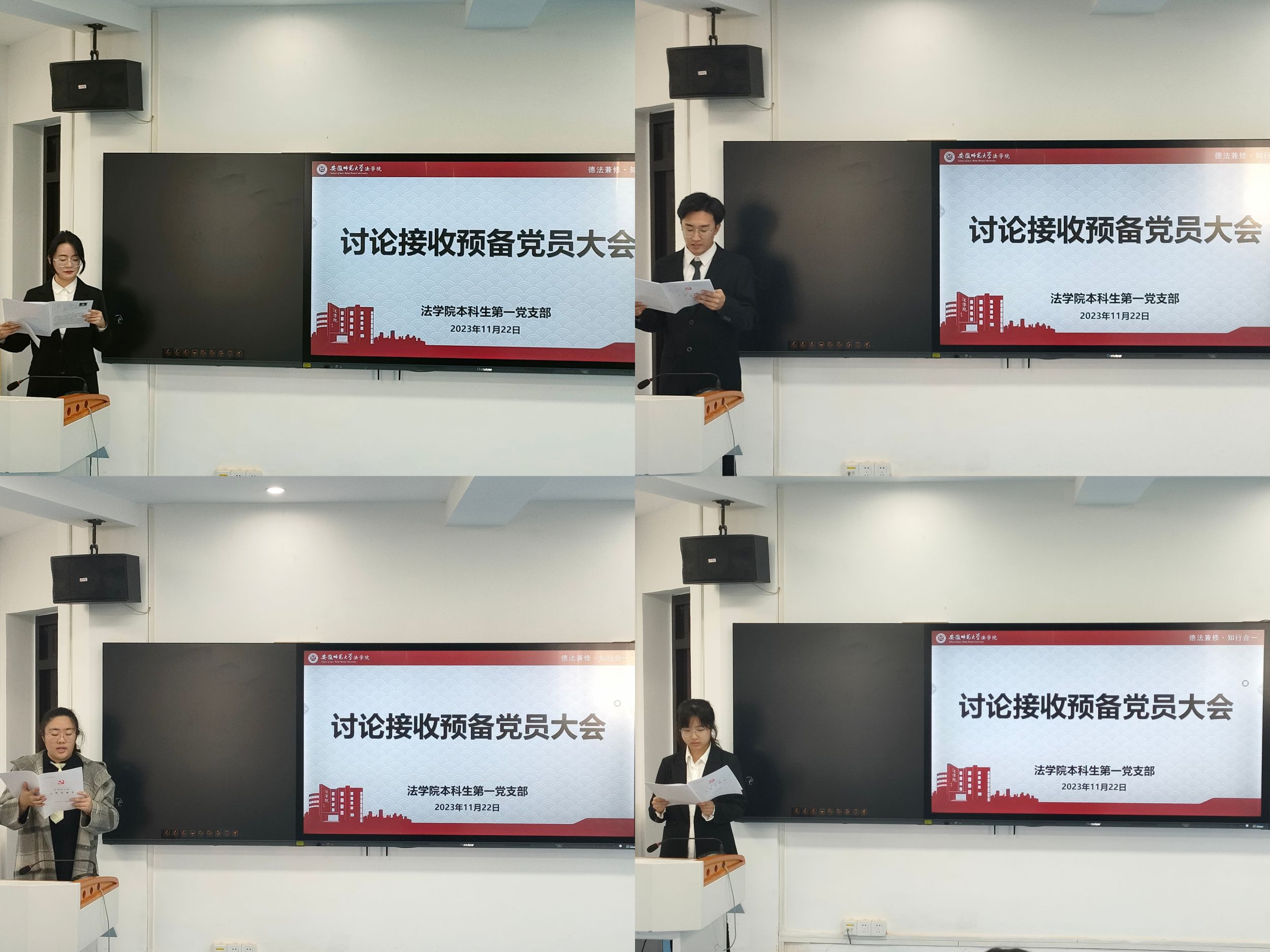 会前,全体起立奏唱国歌。赵悦宣布会议议程,报告了出席会议的党员人数后,会议正式开始。会上,王浩宇等8位发展对象依次向党组织详细汇报了自身在思想、学习和工作等多个方面的表现,表达了自己加入中国共产党的坚定信念与决心,同时指出自身发展过程中需要改进的地方。入党介绍人结合发展对象的日常表现,依次介绍了各位发展对象的个人情况,并就是否同意接收为预备党员表明了态度。与会党员针对各位发展对象的表现充分发表意见和提出期望。各位发展对象对会上所提意见进行了表态,并表示在接下来的时间里会加以改正,不断提升自我。大会经无记名投票方式表决,全票通过王浩宇等8位发展对象成为预备党员。