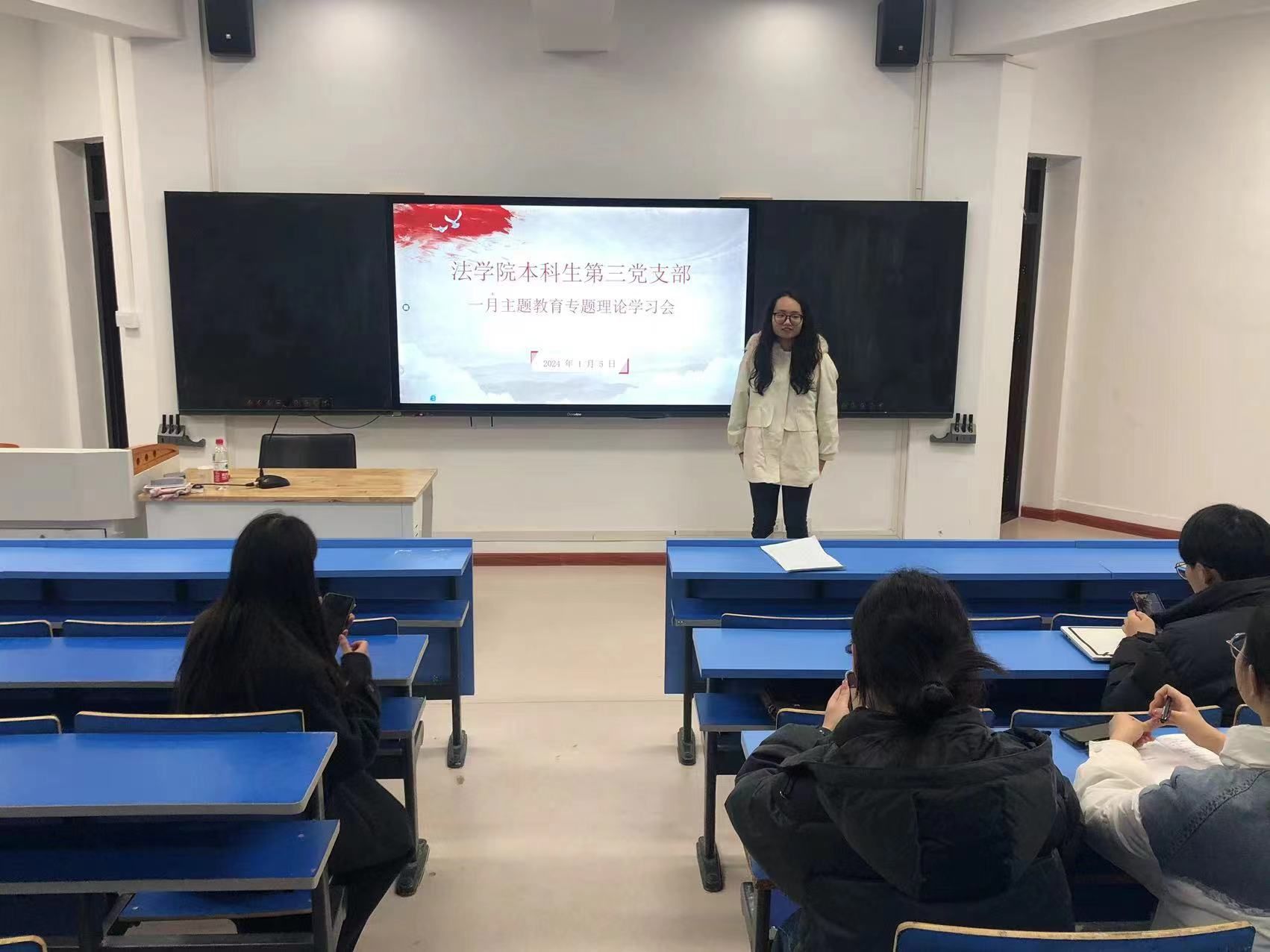 本网讯(英国上市公司365 朱慧 朱长龙)为深入学习贯彻习近平新时代中国特色社会主义思想,研学习近平总书记的最新讲话精神,1月5日下午,英国上市公司365本科生第三党支部于行政楼113报告厅召开一月份主题教育专题理论学习暨研讨交流会。会议由支部书记朱慧主持,第三党支部全体成员参与。