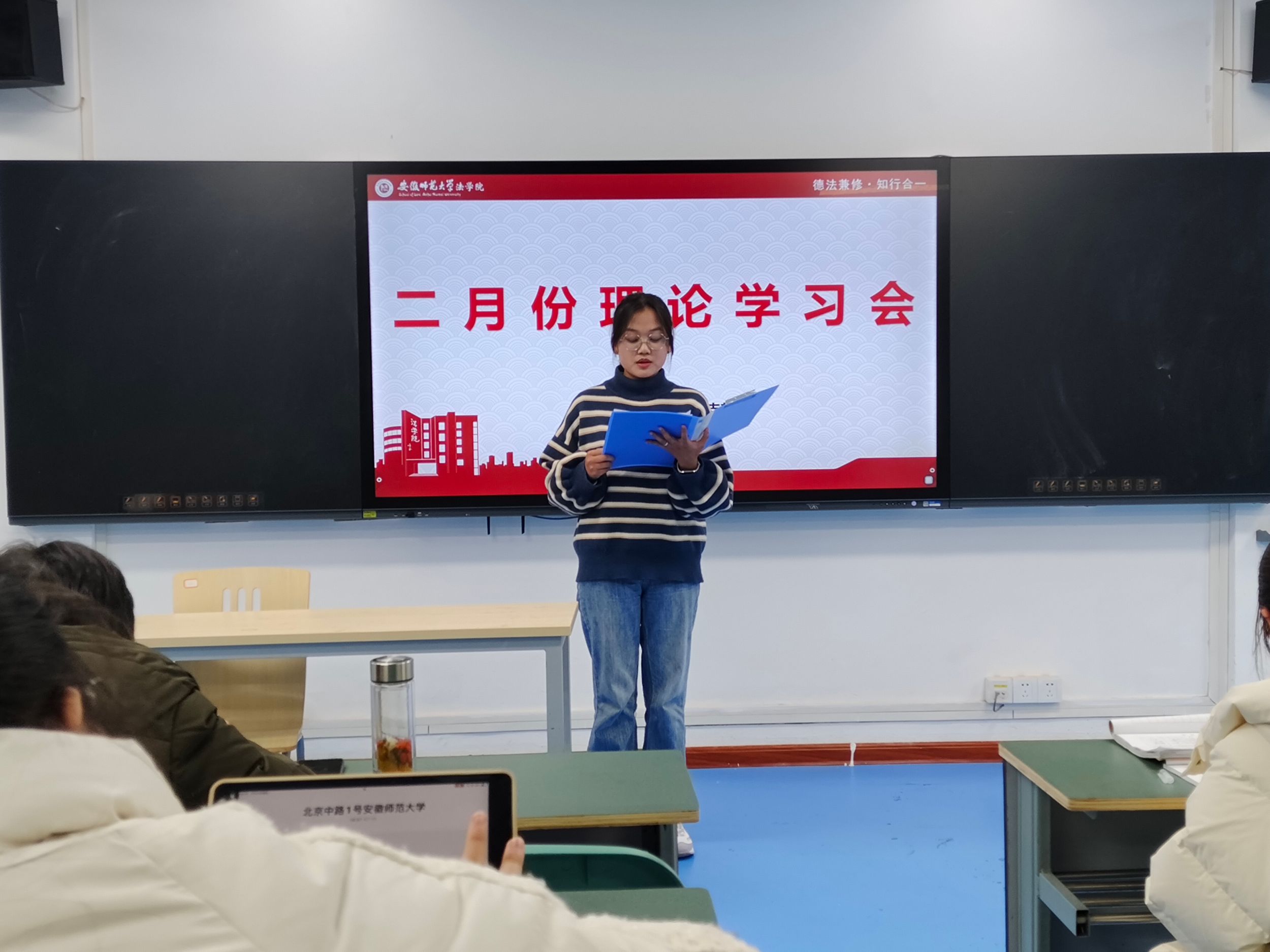 发展对象评选答辩会后,支部召开了2月份理论学习会。王浩宇领学了《中国共产党第二十届中央纪律检查委员会第三次全体会议公报》,李璐领学了学习贯彻习近平新时代中国特色社会主义思想主题教育总结会议的相关内容。